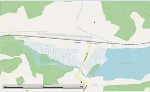 ![]() Map showing the location of the station stop, with passing tracks to the north of the stop. | |||||||||||