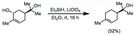 7. Wustrow, David J.; Smith, William J.; Wise, Lawrence D. (January 1994). "Selective deoxygenation of allylic alcohols and acetates by lithium perchlorate promoted triethylsilane reduction". Tetrahedron Letters. 35 (1): 61–64. doi:10.1016/0040-4039(94)88162-6.