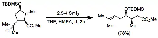 - ↑ Molander, Gary A. (2004). "Reductions with Samarium(II) Iodide". Organic Reactions. pp. 211–367. doi:10.1002/0471264180.or046.03. ISBN 0471264180.