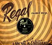 Regal Records was an American record label that issued popular music and jazz in the years after World War II. The label's headquarters were in Linden, New Jersey. This label was founded by David and Jules Braun, the founders of De Luxe Records, in 1949; it has no relation to the British, Spanish, or American versions from the 1920s. In the United States, there were also short-lived labels by this name based in California (1947–1949) and Michigan (1947), but these are unrelated to the Linden organization. This label also issued R&B and gospel music. A subsidiary called Tots and Teens issued children's records.[1]