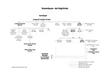 She is said to have grown up in the Säckingen monastery and was married to Count Burkhard II in 904. Together with him, Regelinda founded the convent of St. Margarethen in Waldkirch.[8] Through the marriage of her children, she had close contacts both with the Kingdom of Burgundy (Bertha married King Rudolf II of Burgundy)[9][10] and the royal court of the Ottonians (Ida married the eldest son of Otto the Great, Liudolf).[11] The marriage of her daughter Bertha to King Rudolf II of Burgundy produced a daughter, Adelaide, who, as the wife of Emperor Otto the Great, was to become one of the most important women of the 10th century.