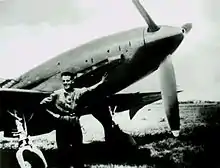 Mechanic Bruno Ferrari posing beside a Re.2005 at Reggio Emilia airfield c.1944–45.