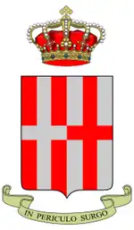 The Regiment "Cavalleggeri di Alessandria" (14th) (Italian: Reggimento "Cavalleggeri di Alessandria" (14°) - "Chevau-légers of Alessandria") is an inactive cavalry unit of the Italian Army. The regiment was formed after the First Italian War of Independence. The regiment participated in the Second Italian War of Independence, Crimean War, and Third Italian War of Independence. In World War I the regiment fought dismounted on the Italian Front. During World War II the regiment was assigned to the 1st Cavalry Division "Eugenio di Savoia", which was deployed to occupied Yugoslavia on anti-partisan duty. The division and its units were disbanded after the announcement of the Armistice of Cassibile by invading German forces.[1][2] The unit was last active from 1964 to 1979 as reconnaissance squadron of the Infantry Division "Granatieri di Sardegna".[3]