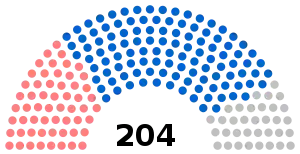 The Regional Council of Auvergne-Rhône-Alpes was created by the act on the delimitation of regions, regional and departmental elections and amending the electoral calendar of 16 January 2015, which went into effect on 1 January 2016 and merged the Regional Council of Auvergne and Regional Council of Rhône-Alpes,[1] consisting of 47 and 156 regional councillors, respectively, into a single body with 204 regional councillors, following regional elections on 6 and 13 December 2015.[2][3]