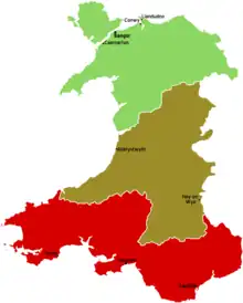 - "South West Wales" — Swansea, Neath Port Talbot, Pembrokeshire and Carmarthenshire[33]