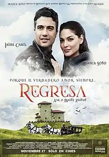 Regresa is a 2010 Mexican romantic comedy film directed by Alejandro González Padilla and starring Jaime Camil and Blanca Soto.[2] It won best film at the 2010 Monaco Charity Film Festival.[3] The comedy concerns a wife who is regressed in hypnotherapy to a previous life as a 15th-century Basque girl, but then will not snap out of this identity. The film has the Basque language byline "Asko maite zaitut" - "I love you very much".