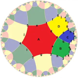 In mathematics, a regular map is a symmetric tessellation of a closed surface. More precisely, a regular map is a decomposition of a two-dimensional manifold (such as a sphere, torus, or real projective plane) into topological disks such that every flag (an incident vertex-edge-face triple) can be transformed into any other flag by a symmetry of the decomposition. Regular maps are, in a sense, topological generalizations of Platonic solids. The theory of maps and their classification is related to the theory of Riemann surfaces, hyperbolic geometry, and Galois theory. Regular maps are classified according to either: the genus and orientability of the supporting surface, the underlying graph, or the automorphism group.