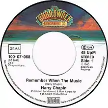 "Remember When the Music" is a song written and performed by Harry Chapin, from the album Sequel. The song is the next chronological single from his hit single, "Sequel" from the same album. It reached the top 50 on the Billboard Adult Contemporary chart and spent five weeks on the chart.