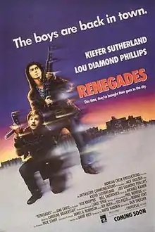 Renegades is a 1989 American action crime film directed by Jack Sholder and starring Kiefer Sutherland, Lou Diamond Phillips and Jami Gertz. It was released on June 2, 1989, by Universal Pictures.