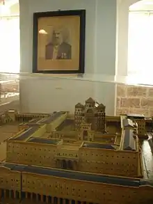 Conrad Schick constructed a series of replicas of the Jewish Temple. His replica of the Biblical Tabernacle was visited in Jerusalem by several crowned heads of state, toured the United Kingdom, and was exhibited at the 1873 Vienna World's Fair. It was purchased by the King of Württemberg, who awarded Schick a knighthood in recognition of his work. Schick built a replica of the contemporary Temple Mount and Dome of the Rock for the Ottoman Sultan. His final model, in four sections, each representing the Temple Mount as it appeared in a particular era, was exhibited at the St. Louis World's Fair of 1904.[3][4]