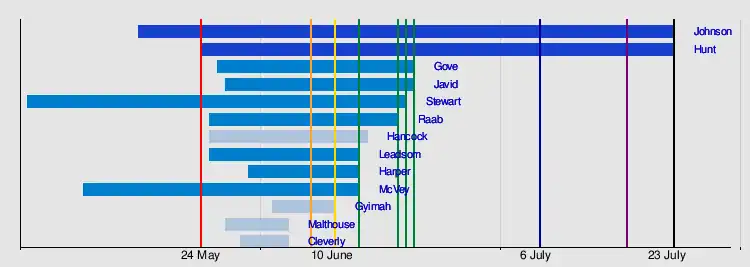 - ↑ "Leadership election candidate MP support numbers: Johnson 30, Gove 29, Hunt 29, Raab 23, Javid 17, Hancock 11". Conservative Home. Archived from the original on 8 October 2019. Retrieved 2 June 2019.
