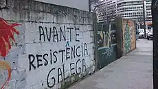 Resistência Galega (English: Galician Resistance), sometimes referred to as REGA,[1] is the term used by a series of left-wing and Galician separatist organisations and individuals to claim attacks in Galicia. The term was first used in 2005 when a manifesto named Manifesto da Resistência Galega appeared on the Internet.[2] Since then, Resistência Galega has carried out dozens of attacks against political party offices and banks across Galicia.