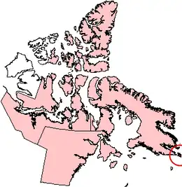 ![]() Resolution Island, Nunavut (red circle at edge of map). | |