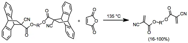 - ↑ Buck, C. J. J. (1978). "Unequivocal synthesis of bis(2-cyanoacrylate) monomers. I. Via anthracene adducts". Polym. Sci., Polym. Chem. Ed. 16 (10): 2475–2507. Bibcode:1978JPoSA..16.2475B. doi:10.1002/pol.1978.170161007.