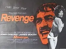 Revenge! is a 1971 British thriller film directed by Sidney Hayers and starring Joan Collins, James Booth and Sinéad Cusack.[1] The screenplay concerns a family who seek brutal revenge on the man who they suspect attacked their daughter.