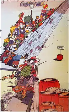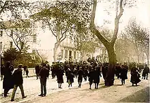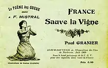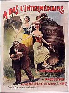 In 1905 a demonstration of 15,000 people was staged in Béziers.[18][19] A certain Marcelin Albert then launched his "petition of 1905", which collected four hundred signatures. It read, "The undersigned have decided to pursue their just claims to the end, to go on strike against the tax, to demand the resignation of all the elected bodies and commit all the communes of the south and Algeria to follow their example with shouts of 'Long live natural wine! Down with the poisoners!'".[20]