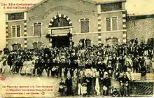 Jean Jaurès came to salute the initiative on the spot.[13] On 1 May 1905, during his visit to the new buildings, the socialist leader explained that the peasants had to unite instead of refusing to help each other, using this allegory: "In a vineyard, contrary and mad grapes said that they did not want to go with their brothers who let themselves be picked. They did what they wanted, and what happened was that they rotted on stump, while the others went to the vat, where they made the good wine that rejoices hearts. Peasants, do not stay away. Put together your wishes, and, in the vat of the Republic, prepare the wine of the Social Revolution!".[15]
