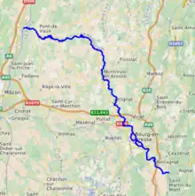 The Reyssouze (French pronunciation: [ʁɛsuz]) is a river in the Ain department in eastern France. It is a left tributary of the Saône, which it joins near Pont-de-Vaux. It is 75.1 km (46.7 mi) long.[1] Its source is in Journans, in the Bresse region. The Reyssouze flows generally northwest through the following communes: Montagnat, Bourg-en-Bresse, Attignat, Montrevel-en-Bresse and Pont-de-Vaux.