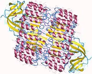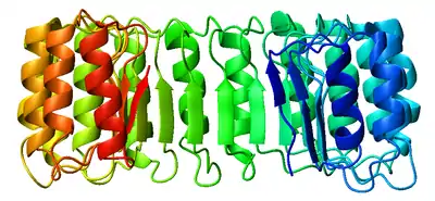 - ↑ Papageorgiou AC, Shapiro R, Acharya KR (Sep 1997). "Molecular recognition of human angiogenin by placental ribonuclease inhibitor--an X-ray crystallographic study at 2.0 A resolution". The EMBO Journal. 16 (17): 5162–77. doi:10.1093/emboj/16.17.5162. PMC 1170149. PMID 9311977.