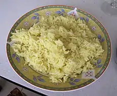 Indian subcontinent | Rice that has been cooked either by steaming or boiling. |