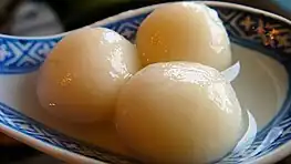 China, Taiwan and Southeast Asia | A traditional (at least from the Ming dynasty) food that is made from glutinous rice paste that has been rolled into small balls, boiled, then put into a soup base. These are traditionally white in color. Sometimes savory or sweet stuffings (such as red bean paste) are added. |