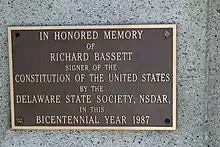Richard Bassett (April 2, 1745 – September 15, 1815) was an American politician, attorney, slave owner and later abolitionist, veteran of the American Revolution, signer of the United States Constitution, and one of the Founding Fathers of America.[1] He also served as United States Senator from Delaware, chief justice of the Delaware Court of Common Pleas, governor of Delaware and a United States circuit judge of the United States Circuit Court for the Third Circuit.