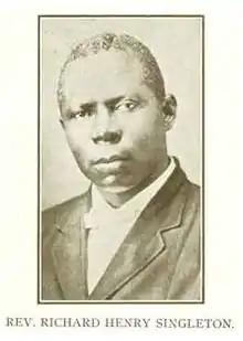 Rev. Richard Henry Singleton (September 11, 1865, Hilton Head, SC - 1923, Atlanta) led the Big Bethel AME Church in Atlanta, Georgia. He began his service to the church in 1893 and started at Big Bethel in 1916. He was trustee of Morris Brown University and president of the local chapter of the NAACP.[1]