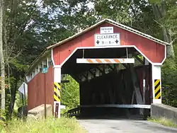 The Richards Covered Bridge is a historic wooden covered bridge located at Cleveland Township in Columbia County, Pennsylvania and Ralpho Township in Northumberland County, Pennsylvania. It is a 64-foot-long (20 m), multiple King post and Queen Post Truss bridge, constructed in 1852. It crosses South Branch Roaring Creek and is one of 28 historic covered bridges in Columbia and Montour Counties.[2] It was listed on the National Register of Historic Places in 1979.[1]