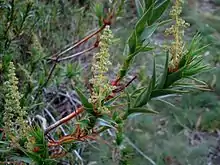 Richea victoriana is a species of flowering plant in the family Ericaceae that is endemic to Victoria, Australia. It is similar to Richea continentis, with differences including the presence of prominent leaf scars on the stems and inflorescences that are less than 12 cm long and have a hairless stem.[2] The species was first formally described in 1995 in Muelleria based on plant material collected from the Thomson River headwaters.[1][3] It occurs in wet areas in the vicinity of the Baw Baw plateau and the Blue Range.[2]