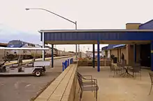 The station has an indoor waiting room with restrooms, a snack bar, and a ticket window. In 2023, renovations began to modernize the waiting room and restroom.