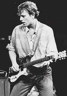 Ricky Helton Wilson (March 19, 1953 – October 12, 1985)[1] was an American musician best known as the original guitarist and founding member of rock band the B-52's. Born in Athens, Georgia, Wilson was the brother of fellow member Cindy Wilson. The B-52's were founded in 1976, when Ricky, Cindy, Kate Pierson, Keith Strickland and Fred Schneider shared a tropical flaming volcano drink at a Chinese restaurant and, after an impromptu music session at the home of their friend Owen Scott III, played for the first time at a Valentine's Day party for friends.[2] Wilson's unusual guitar tunings were a large contribution to the band's quirky sound.[3]