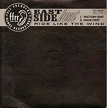 In 1991, Italian dance music group East Side Beat remixed "Ride Like the Wind" in a style typical of early 1990s dance music. There are five remixes in total. Two versions are found on the 7-inch single and an additional three are on the CD single. The Factory edit was included on FFRR Records' Only for the Headstrong compilation album released in 1992.[11]