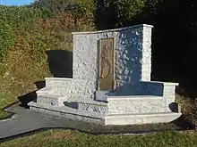 On the 22nd September 1957, a cut stone monument depicting an I.R.A. soldier in uniform was unveiled by Rev. Dr. Rodgers, Bishop of Killaloe, at Drummin Hill where the ambush took place.[21] The memorial cost just over £1200 to erect, and was financed by subscriptions from the U.S.A., alongside donations from veterans of the War of Independence and members of the public.[22] Coinciding with the 37th Anniversary of the ambush, the memorial was erected by the veterans of the 4th battalion of the Mid-Clare brigade. In attendance at the unveilling were Ignatius O'Neill, who delivered a short address, Dr. Patrick Hillary, and Rev. T. Canon O' Reilly, who blessed the monument. On the day, Dr. Rogers commented on the importance of the memorial in inspiring those of the future to build on the legacy of the War of Independence.[21]