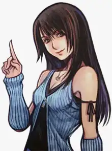 Rinoa Heartilly is the 17-year-old daughter of General Caraway, a high-ranking officer in the Galbadian army, and Julia Heartilly, a famous singer.[11][12][13] Over the course of the game, she falls in love with the protagonist, Squall Leonhart.[11][14][15] Rinoa is a member of the "Forest Owls", a tiny resistance faction seeking to liberate the small nation of Timber from Galbadian occupation.[16] She is called the "princess" of the group.[17] Rinoa first meets Squall at the SeeD inauguration ball at Balamb Garden. During the dance, she manages to charm the usually antisocial Squall into dancing with her.[18][11] She then hires Squall and his mercenary friends Zell Dincht and Selphie Tilmitt to fight for the Forest Owls. After failing to assassinate Sorceress Edea for her crimes against Timber, the Forest Owls escape the sorceress and Rinoa decides to stay with the group.[19][20]