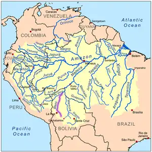 Map of the Amazon Basin with the Beni River highlighted