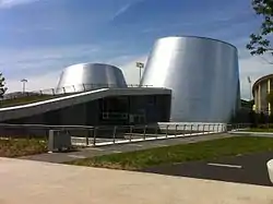 The new planetarium is part of the Space for Life museum complex, a cluster of museums focusing on nature. Sustainable development is a focus for the Space for Life, as reflected in the planetarium's architecture and its status as a LEED Platinum certified building. Constructed of aluminum and concrete, the building contains an exhibition area and two dome theatres named "Chaos" and "Milky Way". Artistic direction was by Michel Lemieux and Victor Pilon.