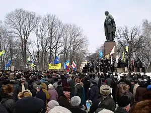 - ↑ "АКЦІЯ "ПОВСТАНЬ, УКРАЇНО!" Мітинг біля пам'ятника Шевченку" ["Rise up, Ukraine!": Meeting near Shevchenko monument]. Ukrainska Pravda (in Ukrainian). 10 March 2003. Retrieved 6 September 2023.