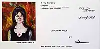 In 1971, Rita opened her own art gallery, Galerie Camille, on Canon Drive in Beverly Hills. Besides selling her paintings, she was commissioned portraits of Tricia Nixon, Otis Chandler, and others.[1][3][13]