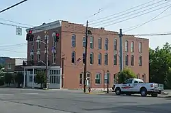 It is a three-story brick building upon a stone foundation and was built sometime during 1913–18, during a period of oil exploration in the area.[2]