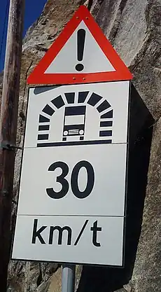 No more than three signs (road number indications excepted) may be mounted on any one pole, with the most important sign appearing at the top. As is customary in European countries, all signs are partly or fully reflectorized or are provided with their own night-time illumination.