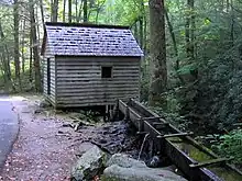 The Reagan mill is a standard tub mill, with a flume redirecting water from Roaring Fork to power a tub-wheel turbine. The turbine turns a grindstone which breaks down corn and wheat into cornmeal and flour. Reagan's mill was well-designed and well-positioned. It is said that when other mills lacked sufficient water power due to low water levels, Reagan's mill would continue to operate.[15]