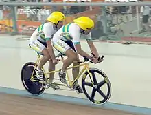 Athens 2004 Paralympic Games Velodrome – Rob Crowe winning the Gold Medal with Kieran Modra in the final of the Men's 4000m Individual Pursuit Tandem B1-3