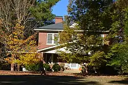 Robert Joseph Moore House is a historic home located at Bynum, Chatham County, North Carolina. It was built in 1929, and is a two-story, four-square, brick dwelling with a brick foundation and a low pyramidal roof with Colonial Revival and American Craftsman design elements. Also on the property are the contributing garage (c. 1930) and barn (c. 1930).[2]