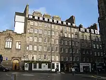 Between 1674 and 1681, again working to Bruce's designs, Mylne constructed a series of cisterns in Edinburgh, as part of a new drinking water supply to the capital. 1678 saw Mylne's first speculative building project. He bought a block of land on the Shore at Leith, the port of Edinburgh, and constructed ten dwellings. In 1684–86, he built a larger development, Mylne's Square, opposite the Tron Kirk in the heart of Edinburgh. This square was the first home of the Bank of Scotland when it was founded in 1695, although the square was demolished in the 19th century to make way for the widened North Bridge. This was followed, in 1690, by Milne's Court, further up the Royal Mile, now occupied by student accommodation. Mylne also built numerous tenement blocks for others. The profits of these projects allowed him to purchase the estates of Balfargie in Fife, and Inveresk, east of Edinburgh, where he died aged 77. He was buried in Greyfriars Kirkyard, under the monument which he erected to his uncle.