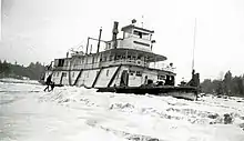 ![]() Steamer Robert Young trapped in ice in the Willamette River near Oregon City, January 1930. | |