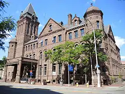 This neighborhood is a Preservation District on the National Register of Historic Places, known as the Madison Square-West Main Street Historic District.[56] It encompasses a three-and-one-half block area within walking distance from downtown Rochester, and comprises residential, commercial and industrial buildings. The center of the residential area is Susan B. Anthony Square, a 0.84-acre (3,400 m2) park shown on city maps from 1839, which was designed by the famous Olmstead Brothers. Also within the neighborhood is the Susan B. Anthony House, which was the suffragist's residence for the last decades of her life, now a museum, as well as the Cunningham Carriage factory built in 1848 on Canal Street. James Cunningham Son & Co. sold more carriages in the United States in the 1880s than all other manufacturers combined. The Canal Street property, which still stands, remained Cunningham's headquarters for more than 100 years.[57]