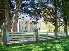 In 1788, Daniel Smith (surveyor) acquired 4,722 acres (1,911 ha) of land in Sumner County, Tennessee along the Cumberland River and Drake's Creek.[19] This was added to his land grant from North Carolina for his services to the Revolutionary War.[20] This made a total of 3,140 acres (1,270 ha) for Senator Dan Smith.[21] Polly, Daniel and Sarah's daughter, received 151 acres (61 ha) at the death of her father. Sarah received the land below this, in the amount of 1,510 acres (610 ha). The rest of the land, including the mansion went to the son, George Smith.[22] Over time, land was sold off for newer housing. Now, 18 acres (7.3 ha) adjoin the mansion.