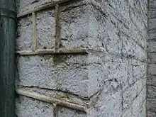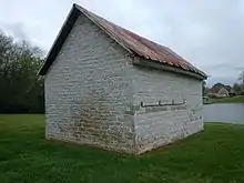 As with any historic Middle Tennessee house of this era, construction items could be made on site, purchased from a local merchant, or ordered from exporters located farther east. Window glass could be shipped in cases, as were hinges, English locks, and barrels of cut nails. Enslaved workers with masonry skill mixed cement mortar from lime and sand binding the wall stones together in a "length-wise and width-wise alternately… Flemish bond pattern."[24] This pattern requires planning, skill, and an good understanding of mathematics. Originally the roof was probably clad in pine shingles. A wooden fence painted with lime wash is said to be original to the house.