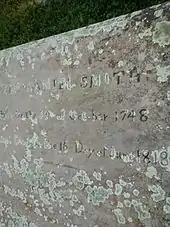 In 1773, Smith married Sarah Michie.[7] In 1783 Major Smith moved to the area that would become Tennessee with his wife and two young children to take up land that was given to him by the State of Virginia for his services in the Revolutionary War.[8] He moved into a small log cabin. The Smith family lived in this for only a short time before the local American Indians burned it down in one of many isolated raids.[8]