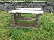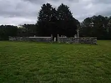 There are over fifty family members buried within the small family cemetery on site. The two largest markers are for the founding members, Daniel and Sarah Michie Smith and their son Colonel George Smith. They both have a table-like marker that apparently covers the entire grave. Senator Smith's is breaking down more, but can still be read. There are other small markers, as well as obelisk style markers and pediment style markers within. A stone fence with an iron gate surrounds the cemetery. The stones were quarried using the same stone as the mansion.